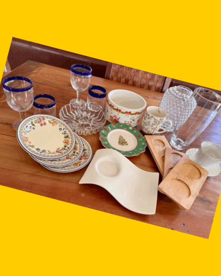 Juego de vajilla de 19 piezas (porcelana, cerámica, vidrio y madera)