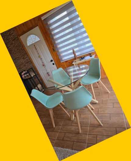 Comedor Mesa De Vidrio 100 Cm + 4 Sillas Tulip Color Menta Habita2