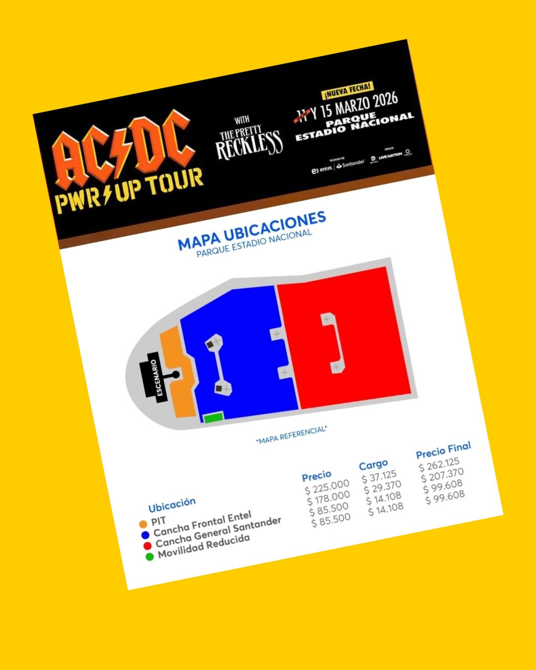 1 Entrada Concierto ACDC, Miercoles 11 de marzo, Estadio nacional