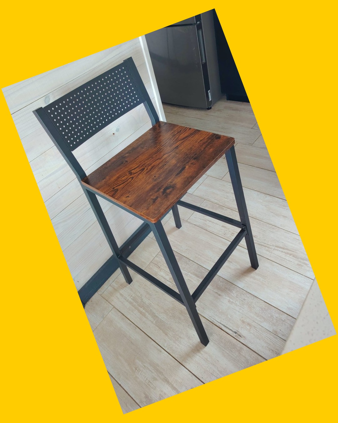 2 Taburetes fierro forjado con asiento de madera Artesanal
