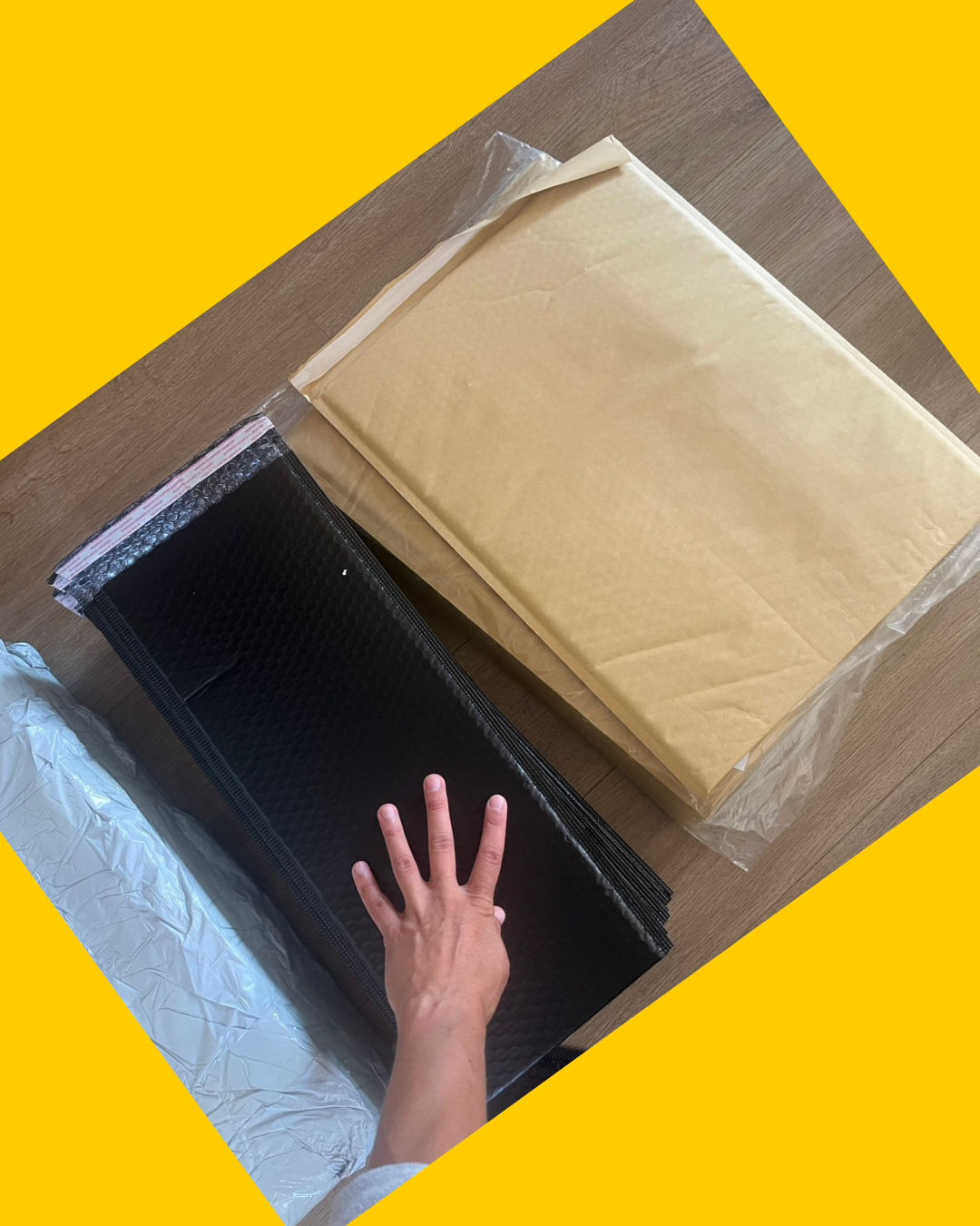 65 paquetes acolchados (52 negros y 13 amarillos)