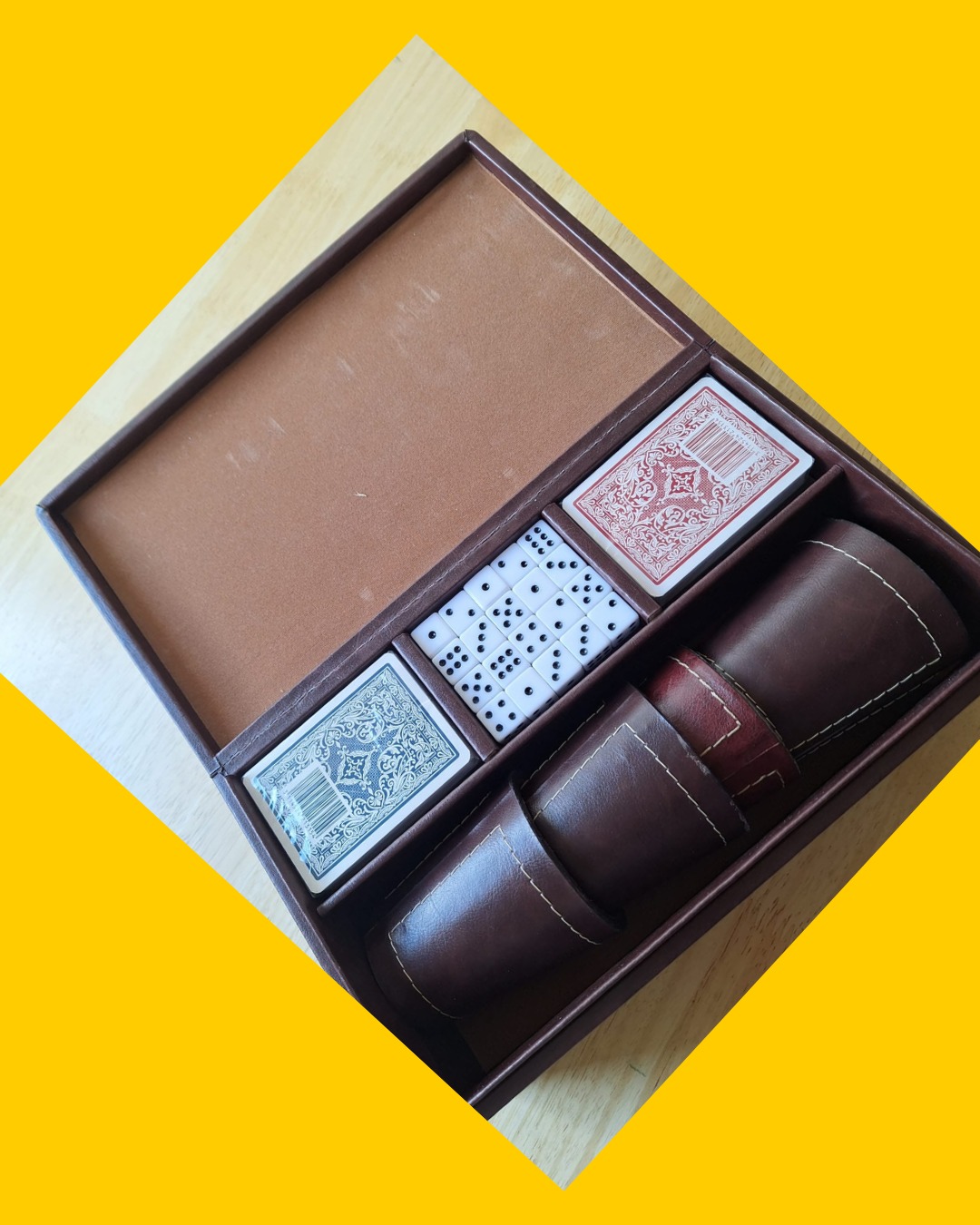 Detalles: uno de los cachos presenta color distinto, la cartas están sin uso