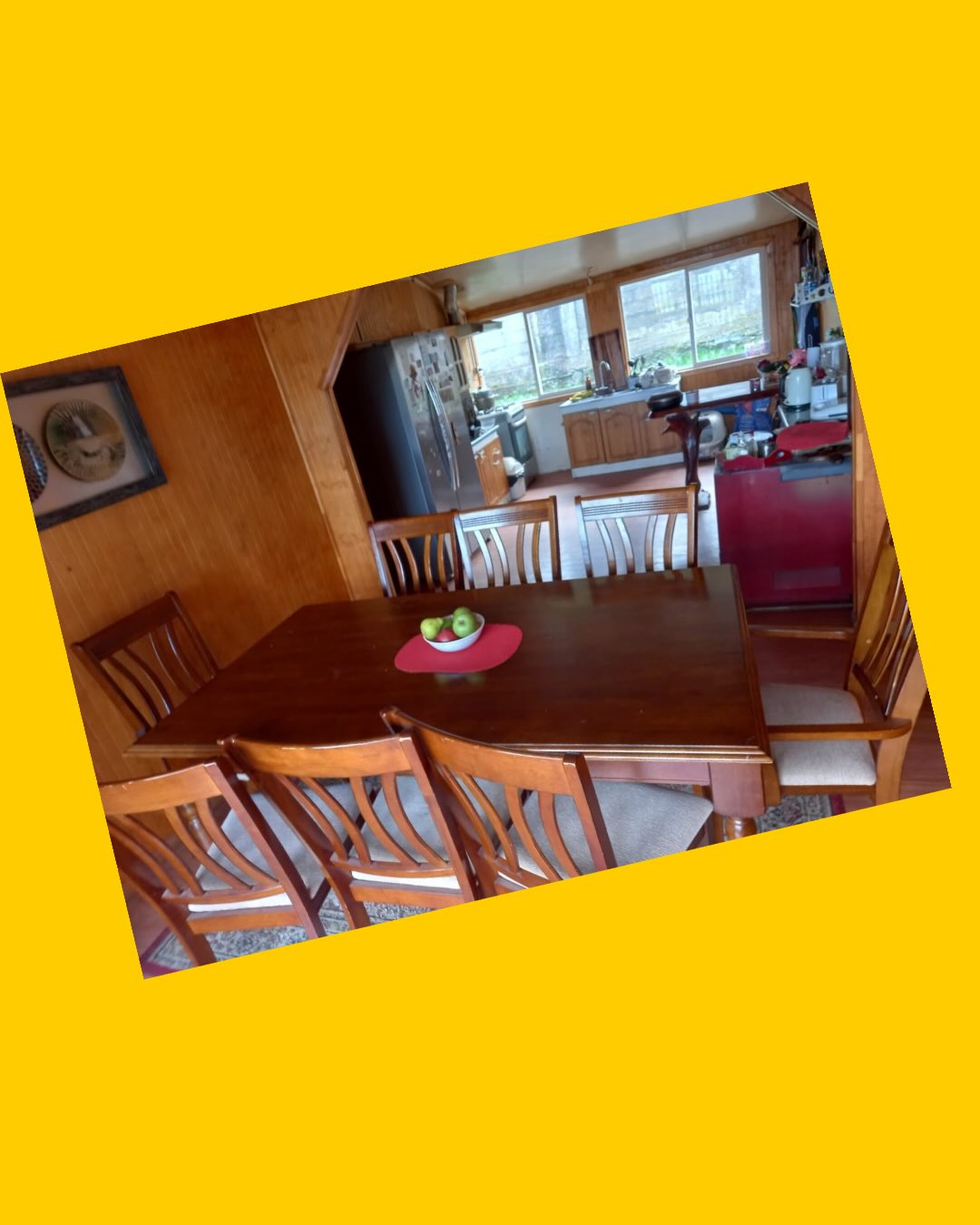 Detalles: Sin detalles, impecable, Incluye mesa y 8 sillas, 2 con apoyabrazos en cabecera. Madera barnizada en tono oscuro