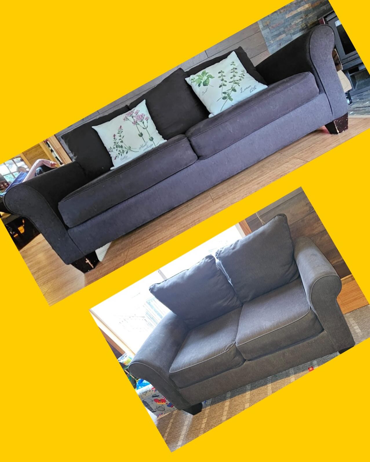 Modelo: con patas de madera y tela gris