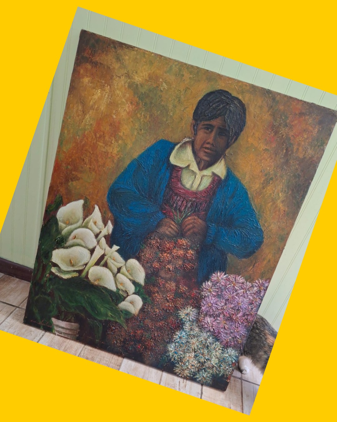 Detalles: Pintura original antigua en óleo sobretela