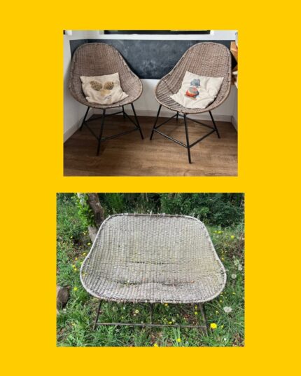 Juego de terraza (2 sitiales + 1 sofá doble)
